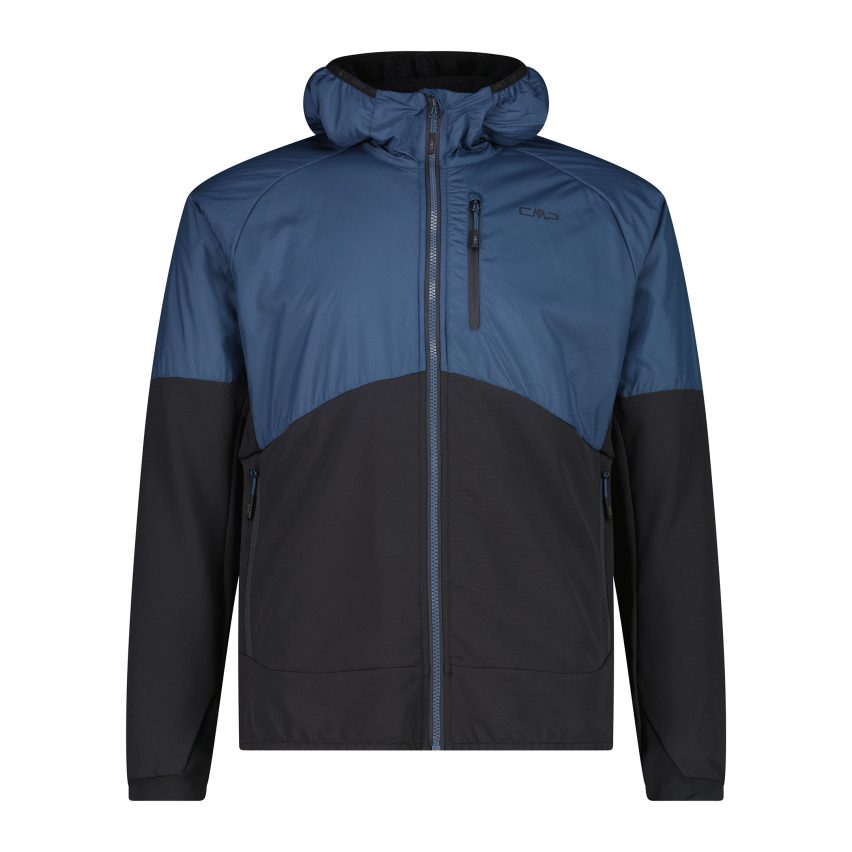 Hybrid technical jacket designed for high-intensity mountain activities such as mountaineering, cross-country skiing, and winter running. The ripstop nylon upper with brushed 3D mesh provides insulation and ventilation, while the stretch woven fabric lower section with Grid Tech inserts increases freedom of movement and breathability. Equipped with functional pockets and a high-collar hood, it can be used as an advanced midlayer or outer layer in non-extreme conditions.
