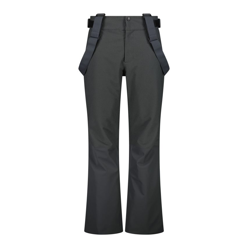 Crafted with stretch corduroy at the top and smooth leg cuffs, they feature adjustable braces and a regular fit. The 40g Feel Warm Flat padding and Clima Protect® membrane (WP 20,000 / MVP 10,000) ensure comfort and protection, complemented by an adjustable waist and snow gaiter at the bottom of the leg.